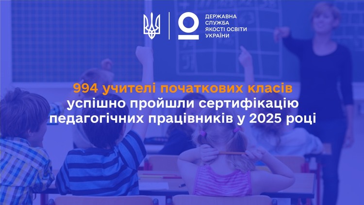 Відтак 994 учителі початкової школи, набравши 120 балів і більше, успішно пройшли сертифікацію зі 1382 педагогів, які взяли участь у процедурі у 2025 році.