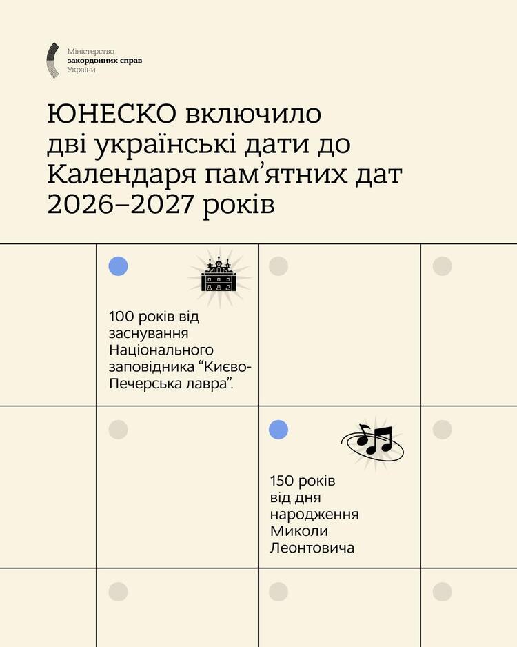 ЮНЕСКО включило дві українські дати до Календаря пам’ятних дат 2026-2027 років