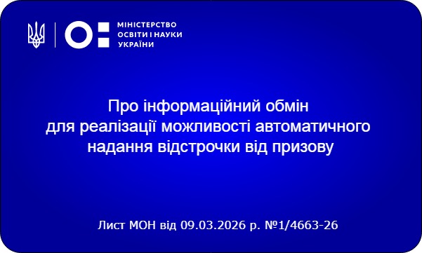 Лист МОН від 09.03.2026 №1/4663-26 "Про інформаційний обмін для реалізації можливості автоматичного надання відстрочки від призову"