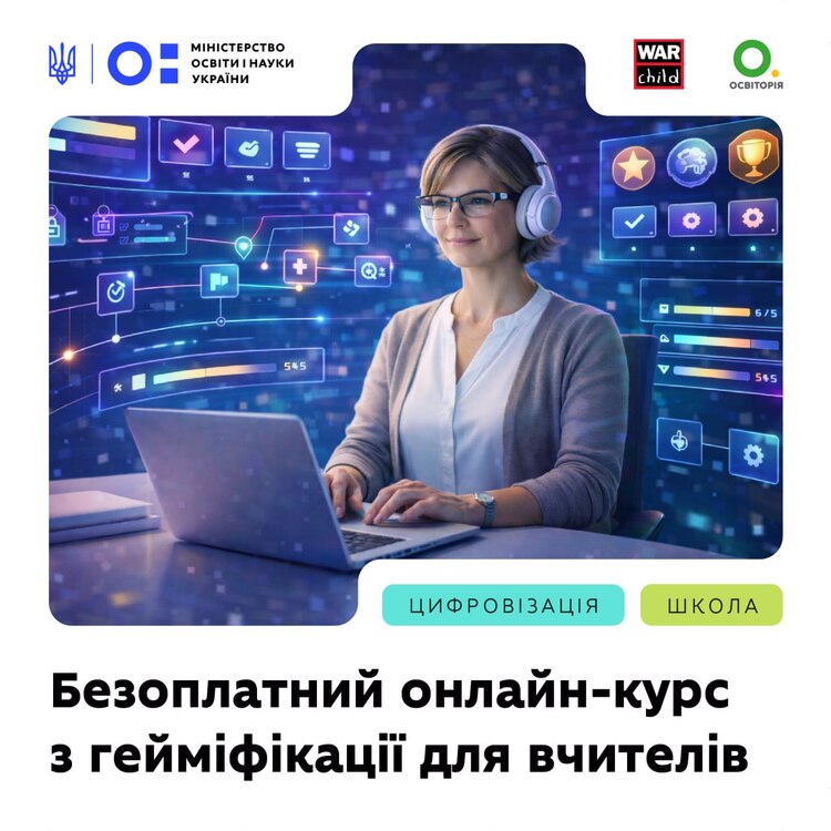 Громадська спілка «Освіторія» за підтримки War Child Alliance у партнерстві з Міністерством освіти і науки України (відповідно до укладеного меморандуму) розробила новий безоплатний онлайн-курс підвищення кваліфікації для вчителів початкової школи — «Гейміфікація в початковій школі: вчимось граючи» https://osvitoria.university/courses/gamification/