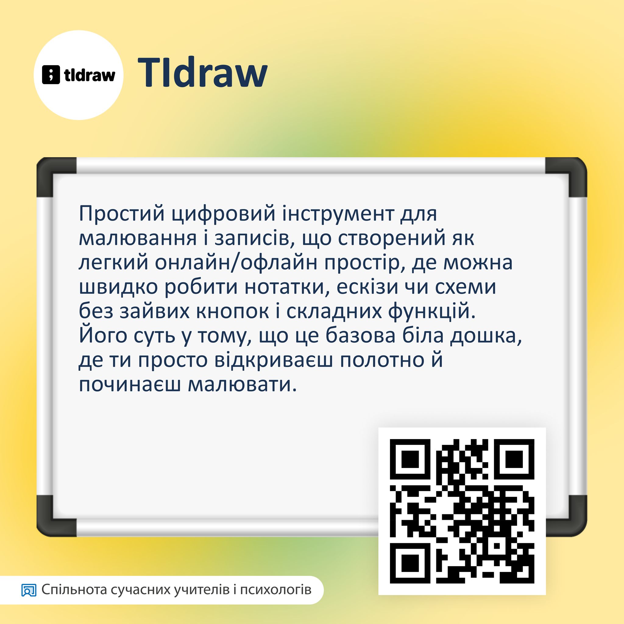 Цей інструмент зручний для коротких онлайн-уроків, пояснення нового матеріалу або закріплення теми. TIdraw легко освоїти навіть тим, хто раніше не працював з електронними дошками. Мінімалізм тут – справжня перевага, а не недолік!