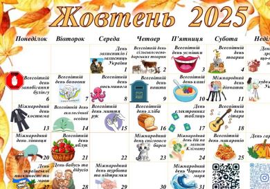 ✔ Календар свят, пам'ятних дат та подій на жовтень 2025 (завантажити)
