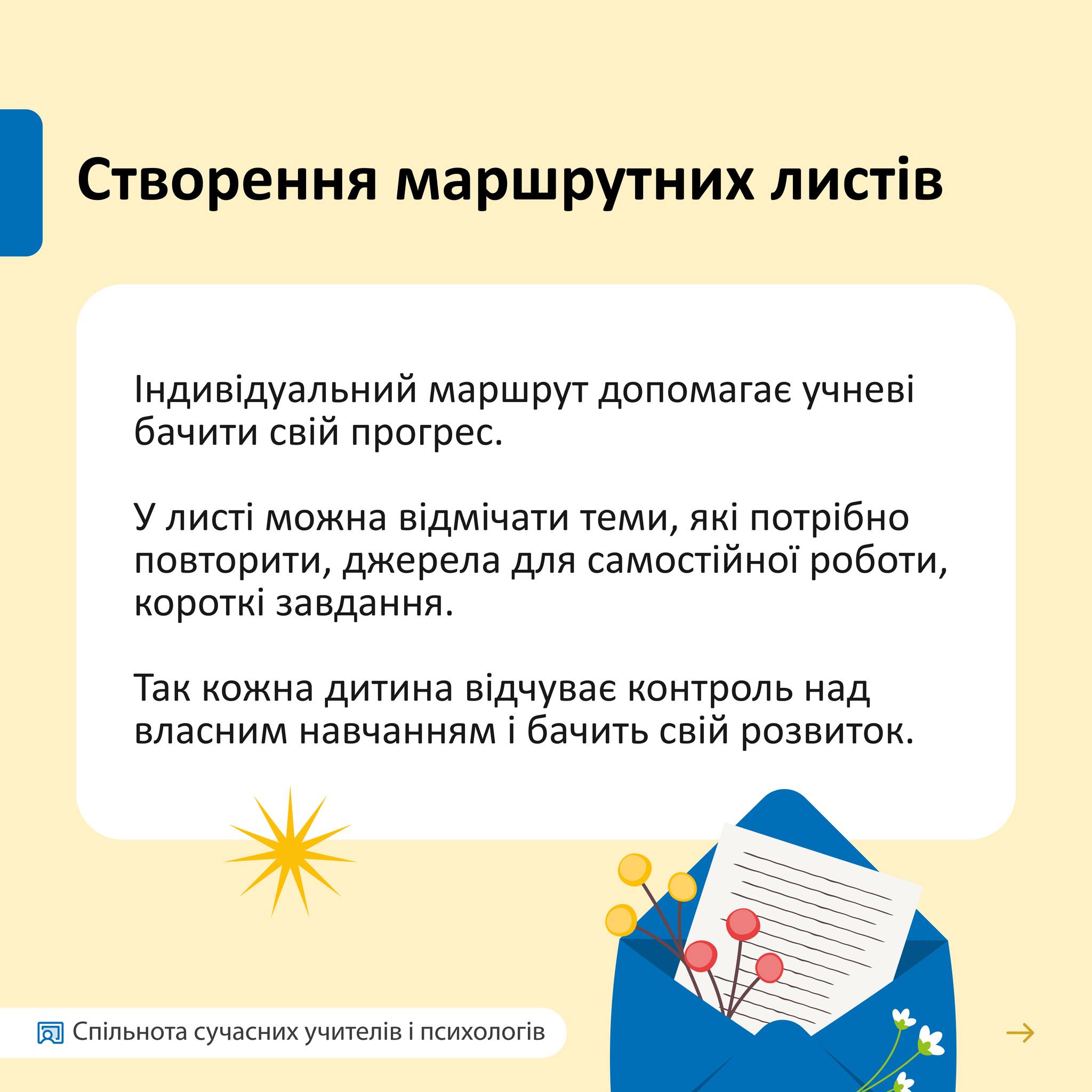 Маршрутний лист — це індивідуальна “карта навчання”, у якій дитина бачить свій шлях і поступ.