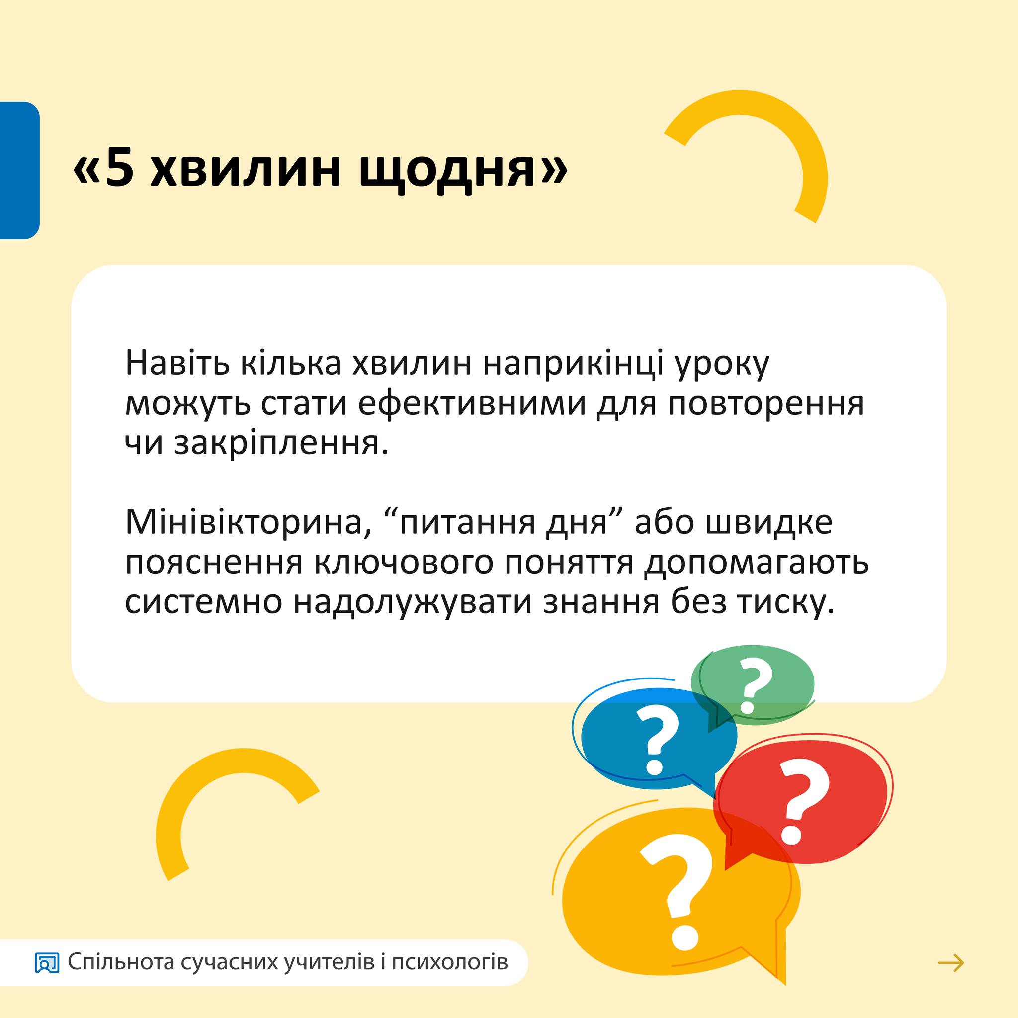 П’ять хвилин наприкінці або на початку уроку — простий спосіб щодня надолужувати прогалини.