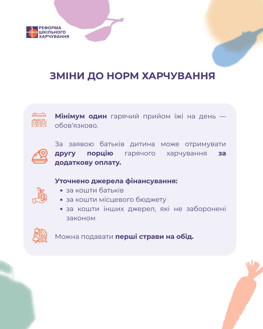 У каруселі зібрали ключові зміни до норм та порядку організації харчування у закладах освіти.