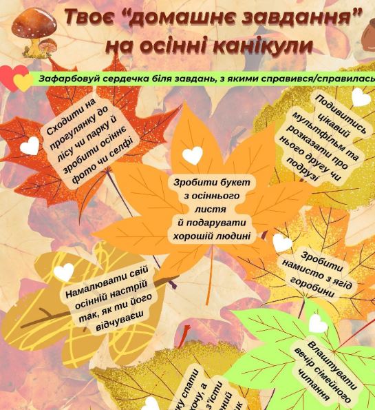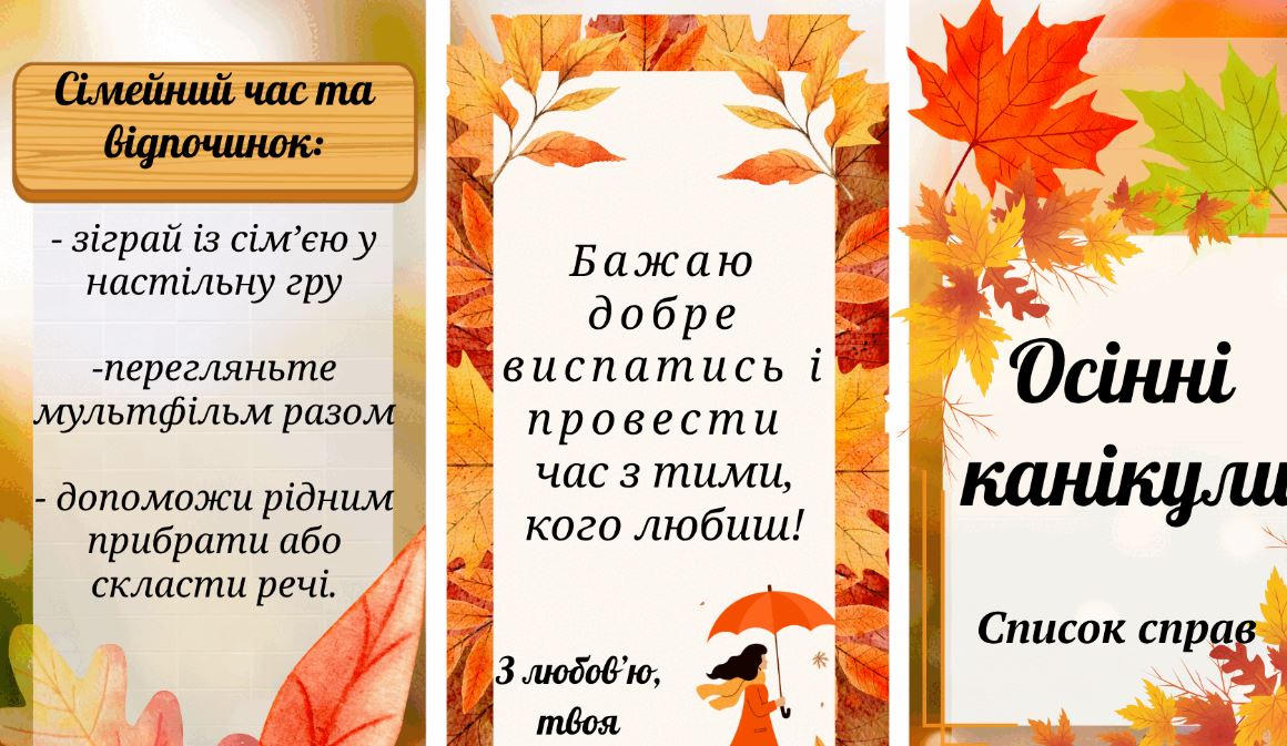 Матеріали можуть бути використані для години спілкування з учнями середньої ланки перед осінніми канікулами.
