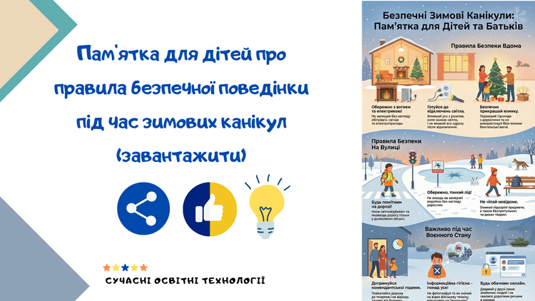 1. Постійно дотримуйся правил дорожнього руху, ОСОБЛИВО ВЗИМКУ! Ніколи не порушуй їх, це небезпечно для життя. Переходь вулицю тільки у відведених місцях. Не влаштовуй ігри на проїжджій частині вулиці. Потурбуйся, щоб в умовах поганої видимості, ваш одяг/взуття/аксесуари були оснащенні світловідбивачами.