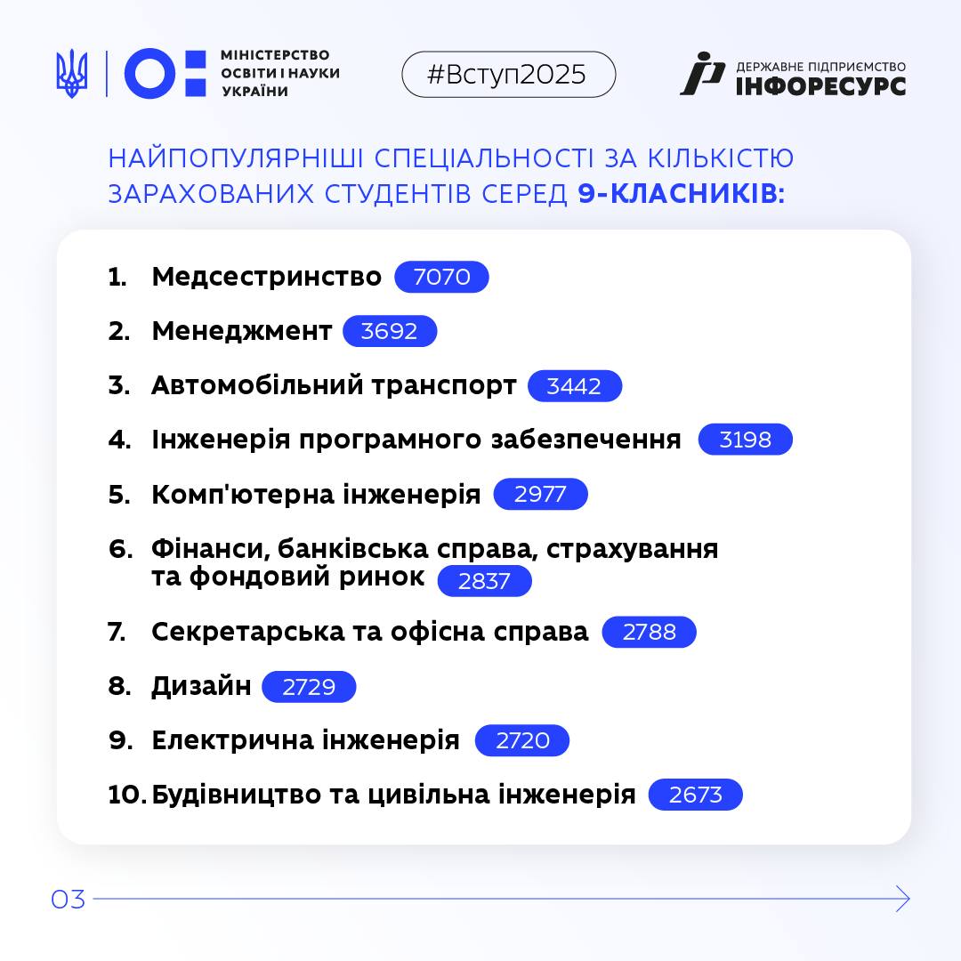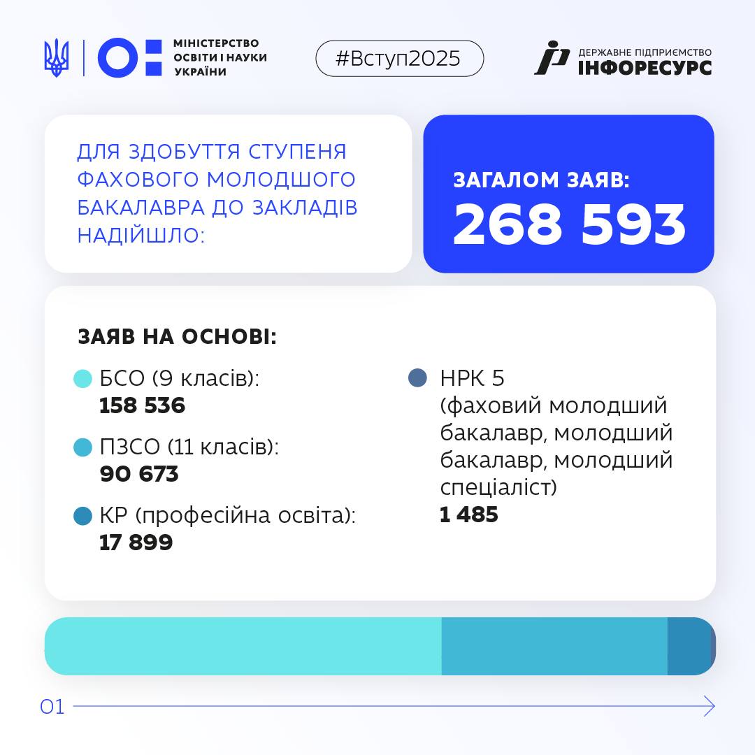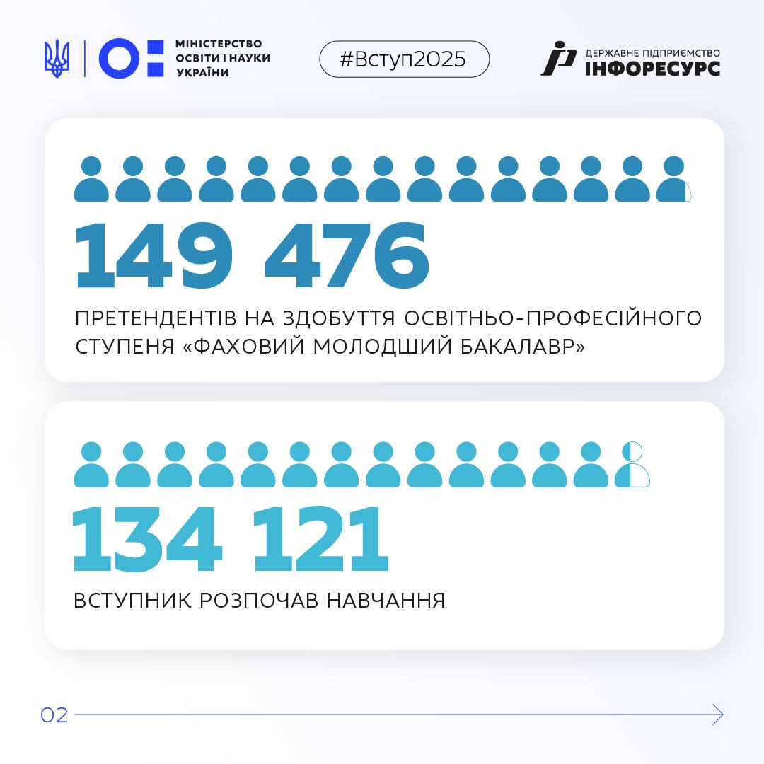 Цьогоріч навчання розпочалося для 134 121 майбутнього фахівця. Вступників-претендентів було 149 476, загалом до закладів надійшло 268 593 заяви.