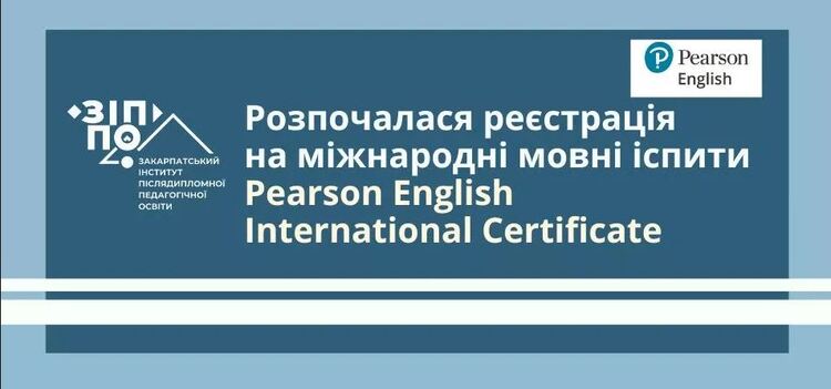 Комунальний заклад «Закарпатський інститут післядипломної педагогічної освіти» Закарпатської обласної ради інформує про початок реєстрації на міжнародний іспит із загальної англійської мови, призначений для підтвердження рівня володіння мовою в акредитованому центрі тестування Pearson 87321 при Інституті.
