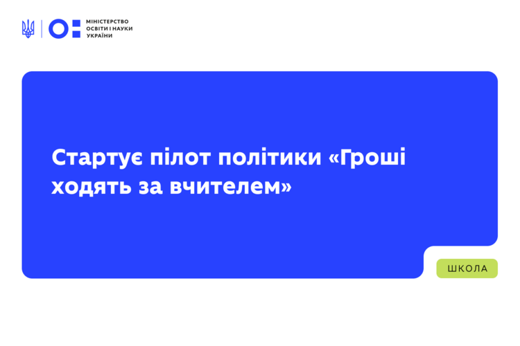 Політику «Гроші ходять за вчителем» реалізує Міністерство освіти і науки України в межах спільної програми зі Світовим банком LEARN — «Підвищення доступності та стійкості освіти в умовах кризи в Україні».