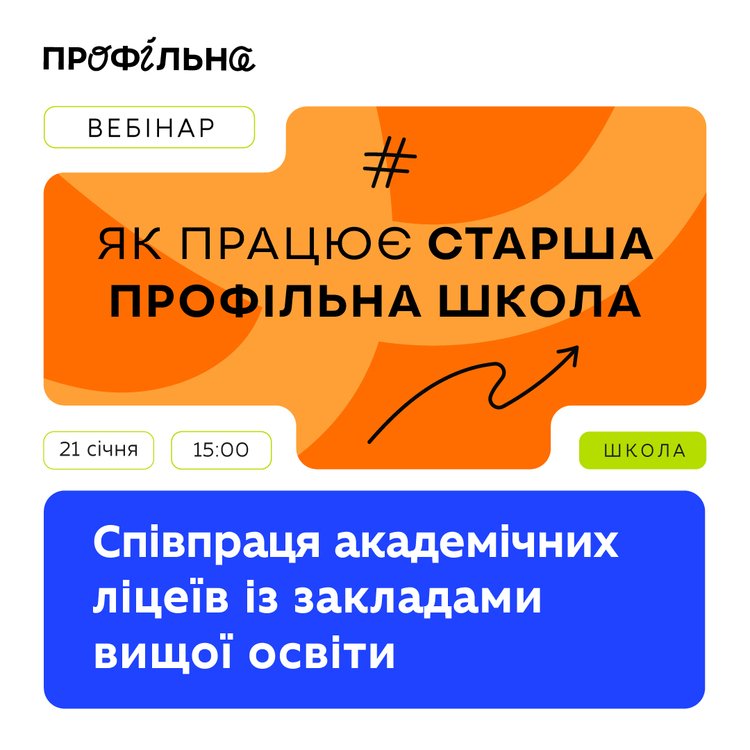 Серію вебінарів «Як працює старша профільна школа» реалізовує Міністерство освіти і науки України за підтримки спільної програми з World Bank Ukraine LEARN — «Підвищення доступності та стійкості освіти в умовах кризи в Україні».