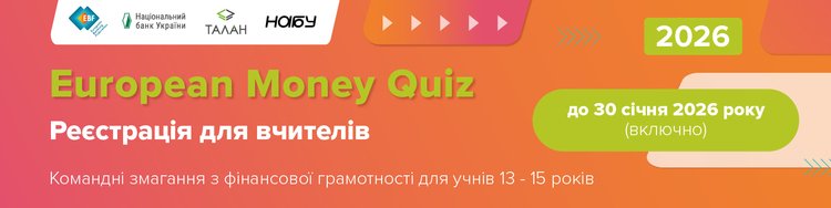 В Україні European Money Quiz проходить у межах Global Money Week 2026 за сприяння Європейської банківської асоціації, її учасників, Національного банку України та Національної асоціації банків України.