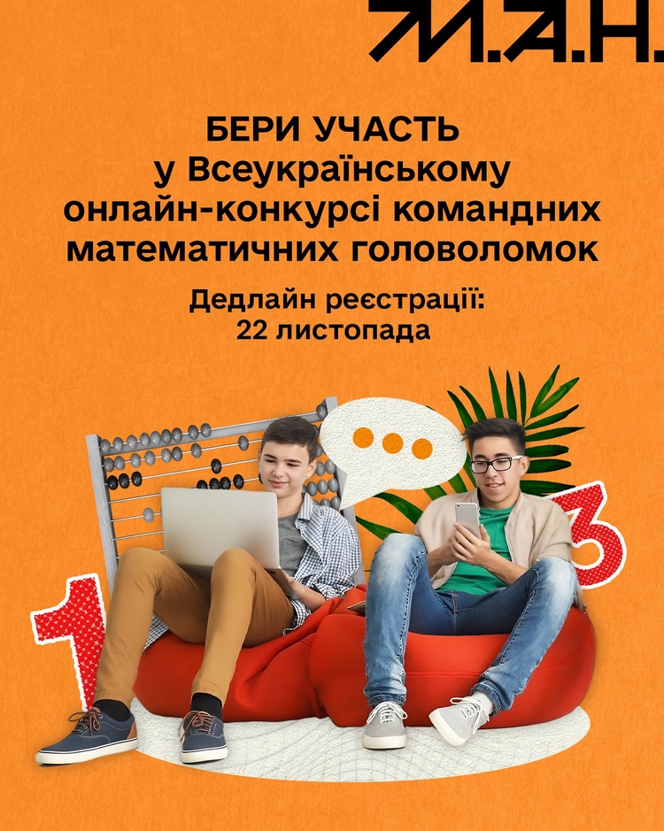 Тоді настав твій час! Збирай друзів (2–4) і долучайся до Командного конкурсу математичних головоломок від Малої.