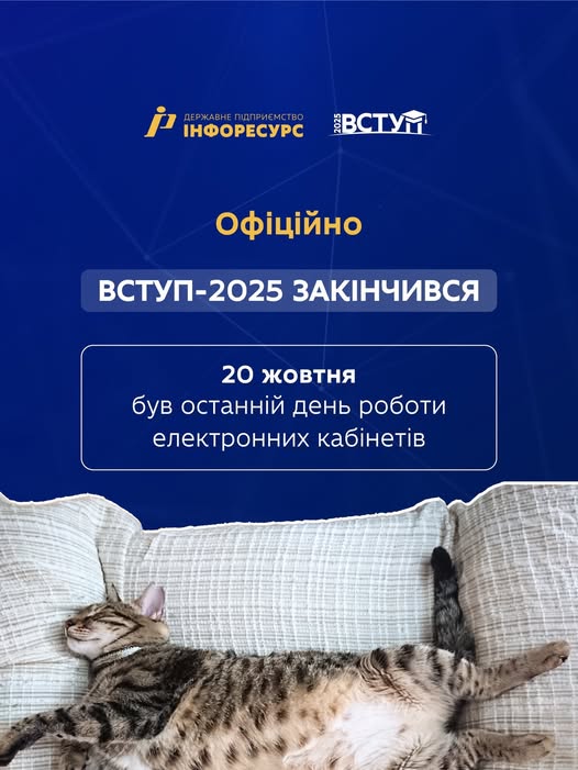 ✅️ Вступна кампанія 2025 офіційно завершилася: вчора, 20 жовтня, був останній день реєстрації електронних кабінетів та подання заяв.